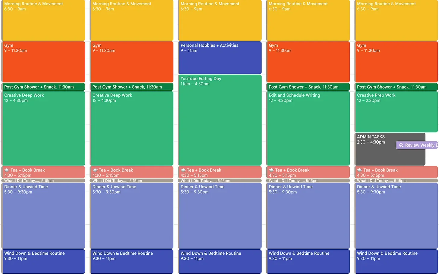 Speaking of that first anchor, I’ve been building my days with habits and rituals. I love structure and routines, but I also want freedom! This is what my current calendar looks like (yes, a little over the top), but I love seeing it. It helps me support my creativity while still leaving space for flexibility.
